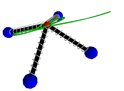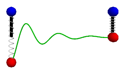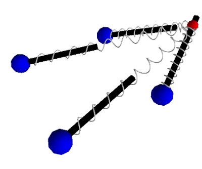 In these diagrams, the black bar represents the rest length of the spring, the blue ball is the fixed point and the red ball is the free point.